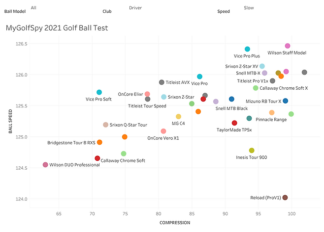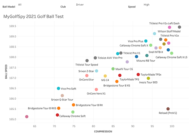 컴프레션이 높은 볼, 즉 단단한 볼은 스윙 스피드가 빠른 사람들에게는 '더 큰' 이득이 되는 것으로 알려져 있습니다. 골프볼이 더 단단할수록 볼 스피드가 증가한다는 테스트 결과가 이를 증명해 줍니다. 비거리에서 더 유리한 것이죠.
