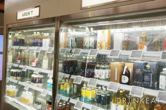 주류 코너에서는 꿀이나 사과, 귤, 오미자 등을 사용한 막걸리나 맥주 등을 만나볼 수 있다. 제주샘 니모메, 한강주조 나루생막걸리, 양촌양조 우렁이 쌀 등 쿠캣마켓 특유의 젊은 감성에 잘 맞는 예쁜 패키지의 전통주가 주를 이룬다. 만 원 이하부터 4만원대까지 다양한 가격대의 제품이 준비돼 있어 선택의 폭이 넓고, 각 제품에 대한 간략한 설명이 적혀 있어 취향에 맞는 술을 쉽게 고를 수 있다는 점이 매력적이다.