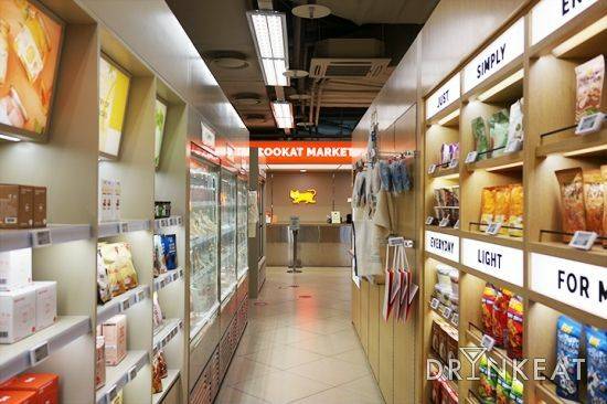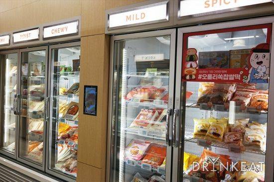 제품 쇼케이스들이 줄지어 설치돼 있는 식품 판매 존에선, 홈페이지에서 판매 중인 거의 모든 제품을 한자리에서 만나볼 수 있다. 제품 가격은 쿠캣 홈페이지와 동일하다. 쇼케이스에는 전자레인지나 에어프라이어로 조리 후 바로 먹을 수 있는 간편식이나 디저트가, 선반에는 단백질 바와 견과류 등 다이어터를 위한 저칼로리 간식들이 진열돼 있다. 스테디셀러인 찹쌀떡 시리즈는 제품을 한눈에 볼 수 있도록 따로 냉동고를 마련했다. 매장 한쪽에는 전자레인지와 테이블이 준비돼 있어 구입한 제품들로 간단하게 한 끼를 해결할 수 있다.