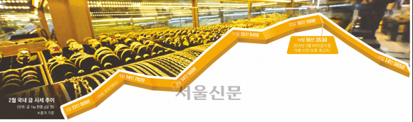 한편 한국거래소(KRX) 금시장에서 1㎏짜리 ‘금 99.99’의 g당 가격은 지난 14일 한때 16만 8500원까지 올라 17만원에 육박했다. 이후 14만~15만원 선을 오가며 조정장이 이어지고 있다.