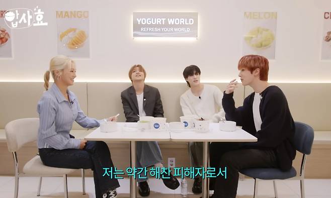 제노의 설명을 듣던 효연이 "선배, 후배 그런 게 있었어?"라고 묻자, 제노는 "처음에는 그랬다. 선배인 척하고 그랬다"라며 해찬을 가리켰다.