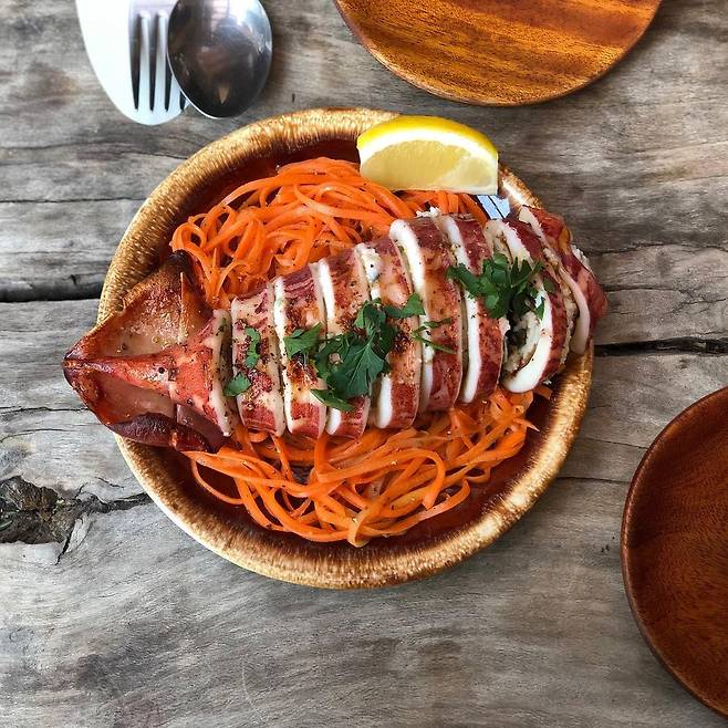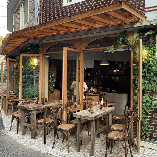 가게 앞 대로변을 따라 테라스를 보유한 해방촌 'Ori'는 테라스 맛집으로 유명하다. 투박한 나무 테이블에 앉아 식사와 와인을 맛볼 수 있다. 마치 동화속에 온 듯한 분위기로 시선을 사로잡는 곳. 대표 메뉴는 오늘의 해산물 카르파쵸로 세가지 해산물과 허브, 야채들이 어우러져 새콤하게 즐길 수 있다. 가볍게 와인 안주로도 제격.