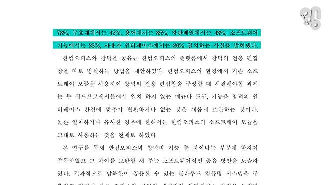 차이점은 창덕과 비교해 아래아한글에 탑재된 기능이 좀더 많다는 정도. 아래아한글 기능이 더 좋다면 북한 입장에선 그냥 이 프로그램을 가져다 쓰는게 낫지 않을까 싶은데, 그건 주체성을 강조하는 북한의 자존심 탓에 불가능한 일이라고.