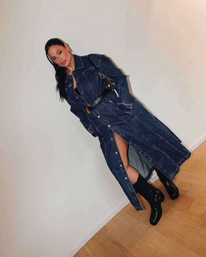 애슐리 그레이엄이 다시 한 번 패션 아이콘다운 존재감을 과시했다. 최근 그녀의 인스타그램에 공개된 사진 속 애슐리는 오버사이즈 데님 셔츠 드레스를 입고 벽에 기댄 채 포즈를 취하며, 절제된 섹시미와 강인한 여성성을 동시에 표현했다. 단추를 깊게 풀어 연출한 허벅지 슬릿과 글로시한 블랙 앵클부츠, 허리를 감싸는 블랙 벨트가 조화를 이루며 전체 룩에 입체감을 더했다.