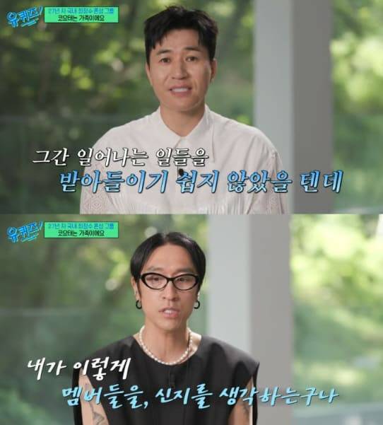 빽가는 "나는 진짜로 두사람 덕분에 이렇게 살고 있다. 사랑합니다. 우리 멤버들"이라고 말하고는 얼굴을 감싸 쥐고 눈물을 감췄습니다.
