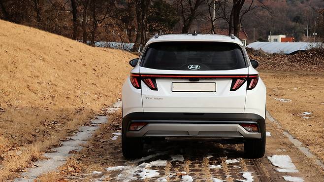 19인치 휠은 옵션으로 선택할 수 있는 최대 크기다. 그럼에도 투싼의 덩치가 워낙 커져서인지, 약간은 작아 보이는 듯 SUV스럽다. 후면 디자인은 페이스리프트 이전과 큰 차이가 없다. 입체적인 테일램프 형상이나 정교한 LED 그래픽 모두 그대로인데, 범퍼 형상만 약간 수정되었다. 두꺼운 가니시가 듬직함을 더하는 반면, 방향 지시등의 위치가 너무 낮다는 점에 좋은 평가를 받진 못했다. 마지막으로 언급하고 싶은 부분은 리어 윈드 실드에 자연스레 통합한 리어 엠블럼과 히든 타입 와이퍼다.