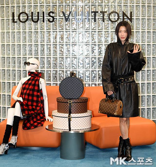 배우 전지현이 루이 비통 2025 FW 여성 컬렉션 팝업 포토월 행사에 참석했습니다.
