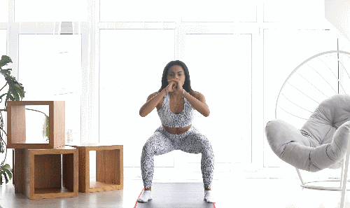 다리를 어깨너비보다 넓게 벌리고 선 뒤 손을 가슴 앞에서 모아 균형을 잡습니다. 스쿼트로 내려갔다가 올라오면서 한쪽 다리를 뒤로 뻗어 런지 동작으로 연결하고 다시 중앙으로 돌아옵니다. 좌우를 번갈아 반복하며 상체가 흔들리지 않도록 중심을 유지합니다.