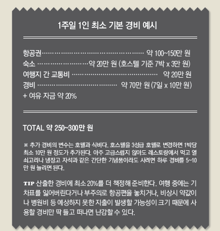 여행 스타일과 여정에 따라 예산은 천차만별이기 때문에 정답은 없다.