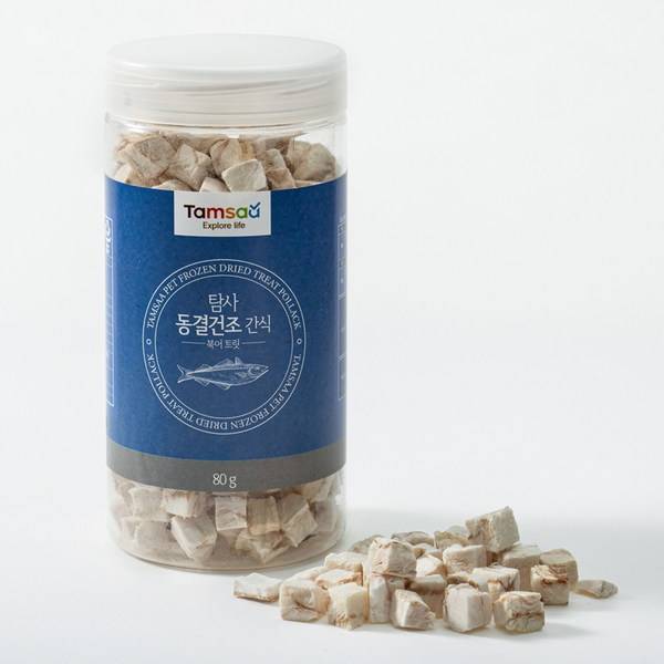 쿠팡 자체브랜드인 탐사의 동결건조 간식으로, 가성비가 뛰어난 제품이에요. 100% 북어 제품으로, 급속 건조 과정을 거쳐 영양소 파괴를 최대한 피한 제품입니다.