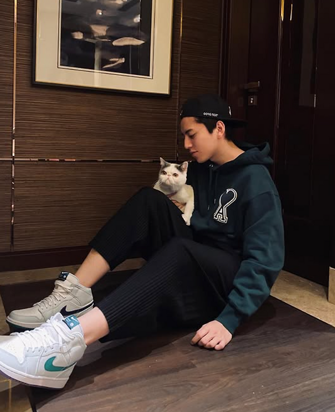 스포티한 룩을 완성했어요.