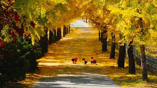 발아래 수북이 쌓인 은행잎은 황금 융단처럼 바스락이며, 누구든 카메라만 들면 엽서 같은 장면을 담을 수 있습니다.