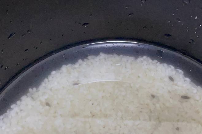 불린 쌀로 이제 밥을 해 줄 건데 물 양도햅쌀보다는 조금 더 많게 해 주세요. 햅쌀의 경우 쌀 분량의 1.1배 정도라면 묵은쌀은 1.5배 정도가 적당하다고 합니다.