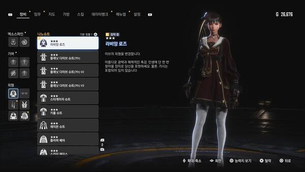 일부 나노슈트는 서브 퀘스트나 의뢰 보상으로도 획득할 수 있다. 모든 나노슈트를 수집하고 싶다면 필드 탐색뿐 아니라 퀘스트도 빠짐없이 챙기는 편이 좋다. 다양한 루트를 통해 수집 요소가 분산돼 있어, 이를 찾아가는 과정 자체가 또 하나의 즐거움이 된다.
