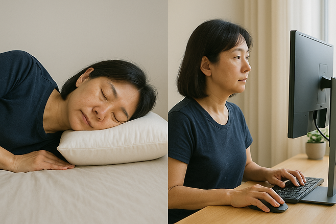 • 베개 : 목 높이 8~10cm, 뒤통수는 낮게—목곡선 유지.