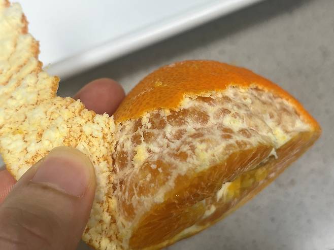 귤껍질에는 기름기를 녹이고 분해하는 성분이 있어 기름기 제거에 효과적입니다. 또한 두툼한 귤껍질 조직이 기름기를 흡수하는 역할을 합니다.