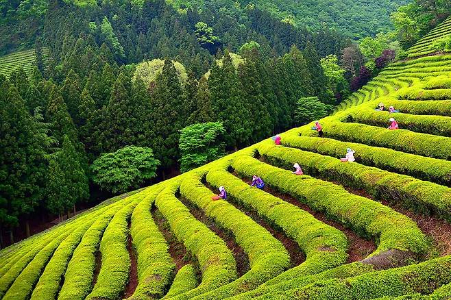 보성 하면 빼놓을 수 없는 것이 바로 녹차밭입니다. 계단식으로 펼쳐진 푸르른 차밭은 봄 햇살을 받으며 한 폭의 그림처럼 다가옵니다.