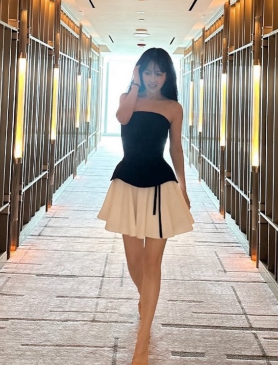 넷플릭스 <정신병동에도 아침이 와요> 제작발표회 때 입었던 착장인데 아보아보 트위드 미니 원피스야.