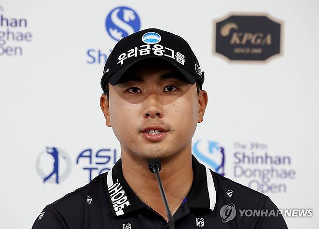 (서울=연합뉴스) 조우영이 8일 인천 중구 클럽72에서 열린 제39회 신한동해오픈 2라운드에서 취재진과 인터뷰하고 있다. 2023.9.8 [신한금융그룹 제공. 재판매 및 DB 금지]