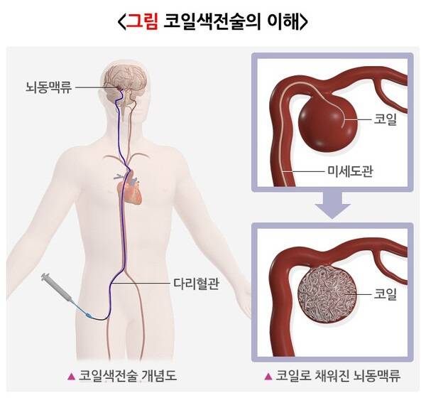 - 뇌동맥류 틀어막는 '코일색전술'로 안전하고 빠른 회복 기대