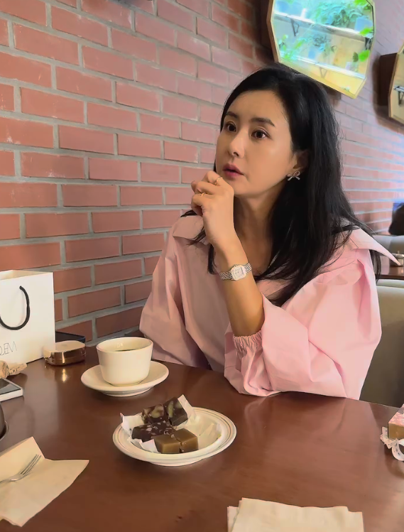 최정윤은 최근 핑크색 셔츠를 착용하여 러블리하고 화사한 분위기를 연출했습니다. 팔에는 실버톤 메탈 시계를 착용해 모던하면서도 지적인 느낌을 더하며, 전체적인 스타일을 더욱 세련되게 완성했습니다.