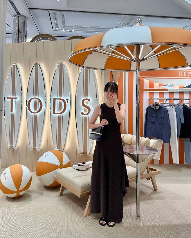 배우 윤승아가 이탈리아 럭셔리 브랜드 토즈(TOD’S)의 플래그십 매장에서 포착됐다. 깔끔한 우드 톤과 오렌지 포인트가 어우러진 전시 공간 속, 윤승아는 우아하면서도 미니멀한 무드의 블랙 원피스와 토즈 백을 매치해 시선을 사로잡았다.
