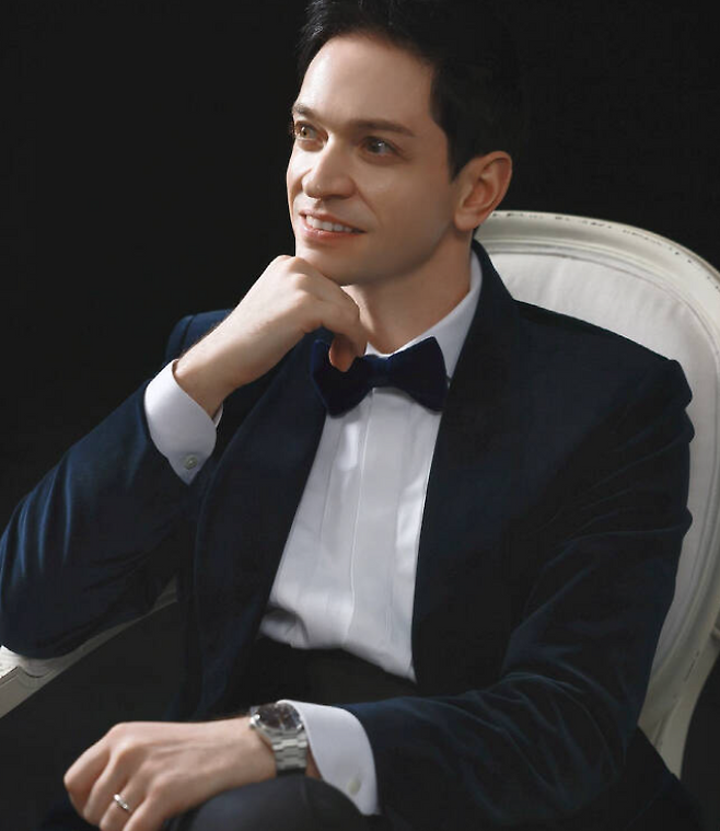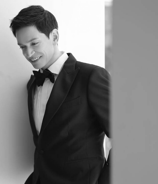 다니엘 린데만은 네이비 컬러 수트에 나비넥타이로 세련된 스타일링을 완성했다.