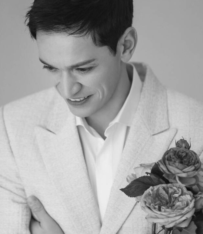 본식 현장에서 다니엘 린데만은 블랙 수트에 나비넥타이를 노랑색 부토니아를 매치했다.