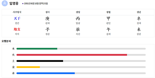공개된 생년월일이 실제와 다를 경우 결과가 달라질 수 있습니다