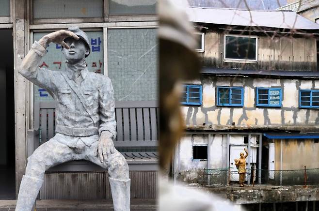 철암의 건물 중 눈길을 끄는 것은 단연 '까치발 건물'입니다. 계곡 위로 확장한 건축물로, 한눈에도 불안정해 보이는 이 구조는 탄광 전성기 시절의 공간 부족 문제를 창의적으로 해결한 증거입니다.