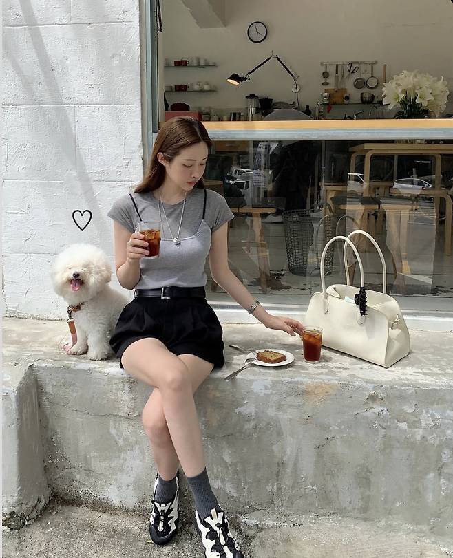 특히 회색 삭스를 활용한 믹스매치와 오버사이즈 화이트 백으로 포인트를 주며, 과하지 않은 데일리룩 안에서도 섬세한 균형미를 자랑했습니다.