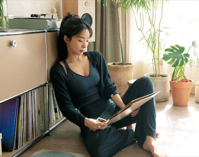 햇살이 드는 거실 한 켠, 이청아는 그 어떤 연출 없이도 평온한 분위기를 만들어내요.