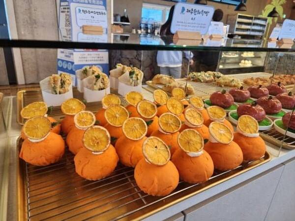 대표적인 시그니처 음료로는 패션후르츠가 들어간 ‘선셋에이드’와 청포도레몬 베이스의 ‘제주바다에이드’가 있습니다. 베이커리 메뉴는 크림이 가득 들어간 빵 등 다양한 디저트가 준비되어 있죠.