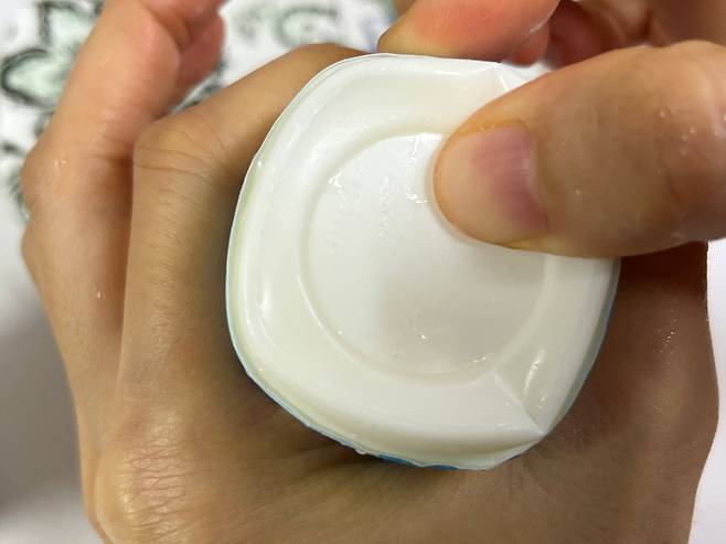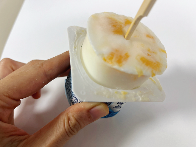 냉동실에서 꺼낸 후 밑 부분을 꾹 누르면 요거트가 쉽게 빠집니다.