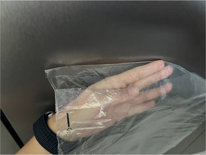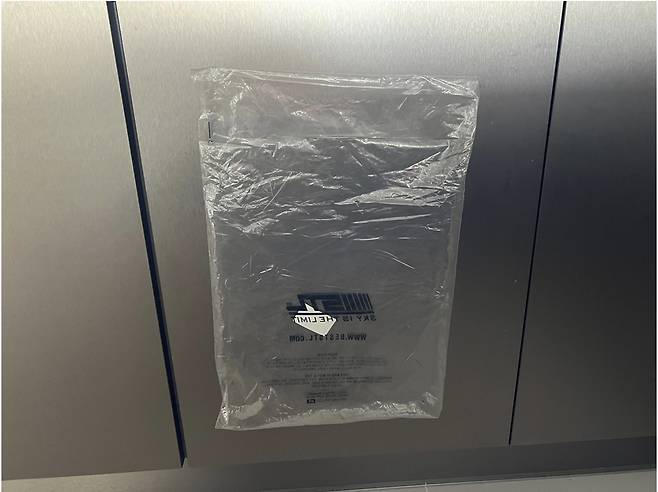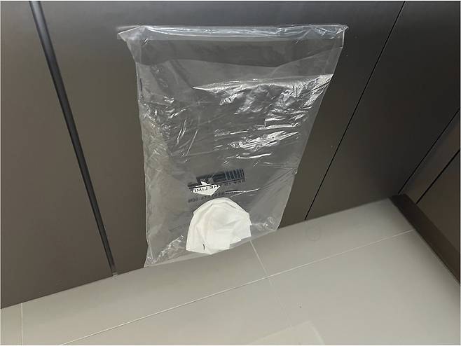 고리를 이용해서 비닐봉지를 걸어서 사용해도 좋지만 옷포장비닐을 버리지 않고 붙여서 사용하면 진짜 대박 편하더라고요