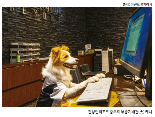 무엇보다도 이 리조트의 가장 큰 핵심 자원은 부총지배견(犬) ‘케니’이다. 친화력이 좋은 보더콜리 케니의 역할은 뛰어난 친화력을 무기로 리조트에 숙박하러 온 다른 반려동물의 친구가 돼주는 것이다.