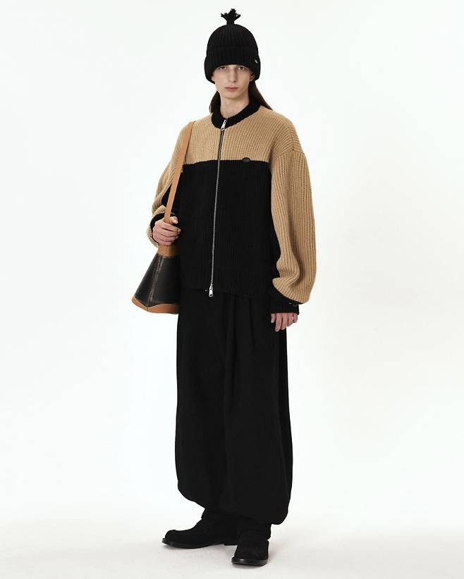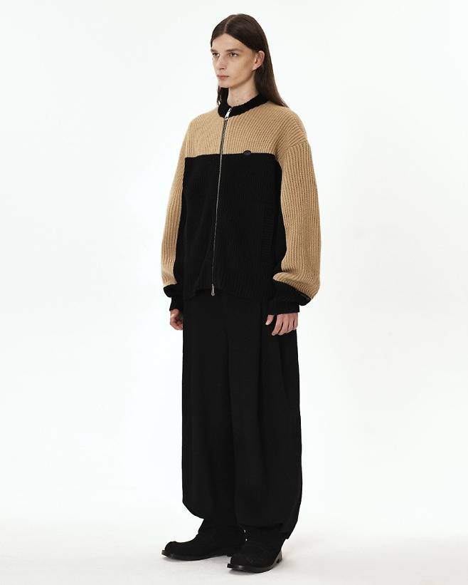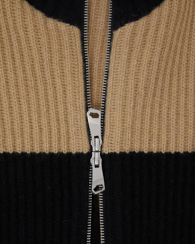 모와 나일론 혼방 소재로 만들어진 세미 오버핏 실루엣의 니트 집업 가디건이야. 더블 배색 라인에 투웨이 메탈 지퍼 디테일까지 있어서 다양한 스타일링이 가능하다는 점이 매력적! 👍