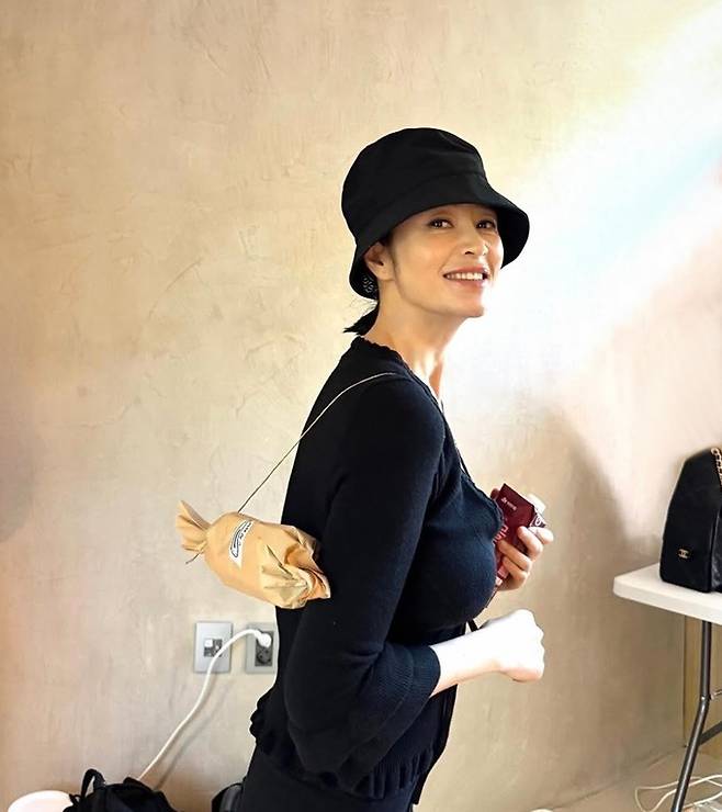 30일 김혜수는 자신의 인스타그램을 통해 “my brand-new bag with a sandwich inside~~”라는 글과 함께 여러 장의 사진을 게재했다.