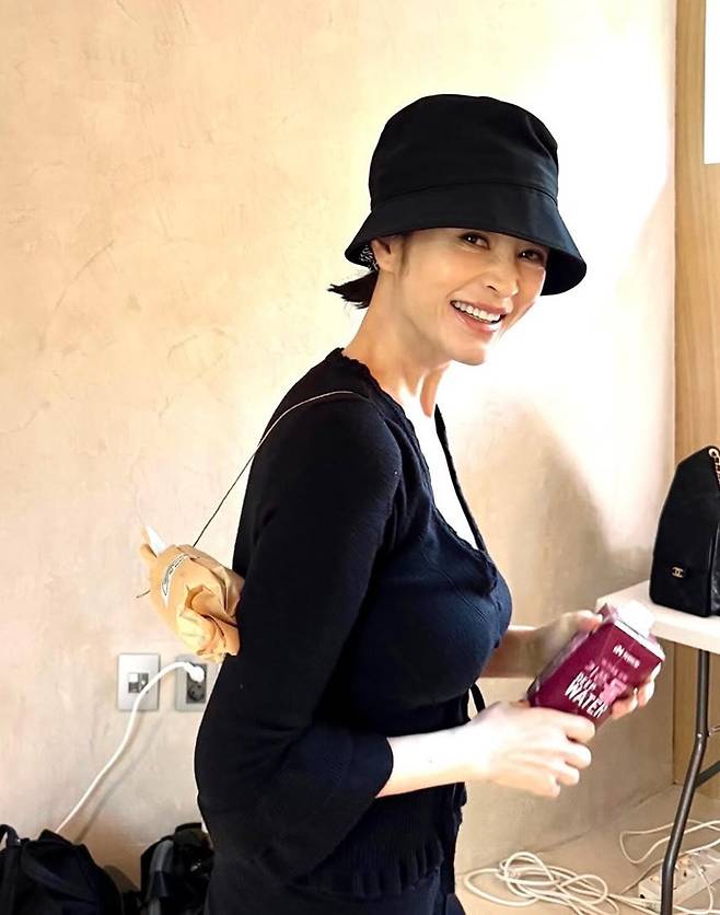 사진 속 김혜수는 블랙 니트 카디건, 여기에 블랙 버킷햇을 푹 눌러쓴 모습으로 포즈를 취하고 있는 모습이 담겼다.