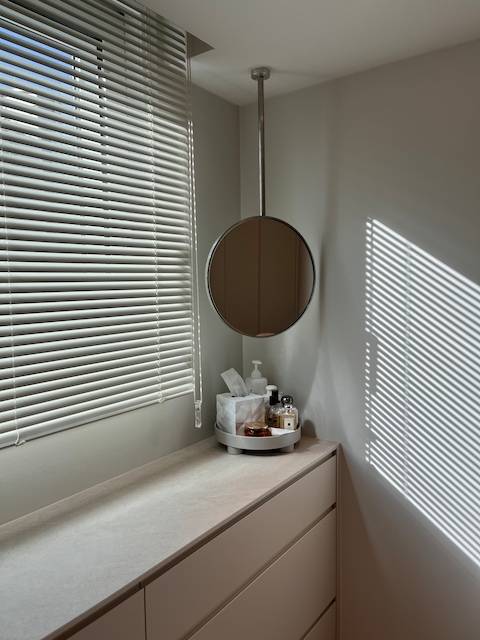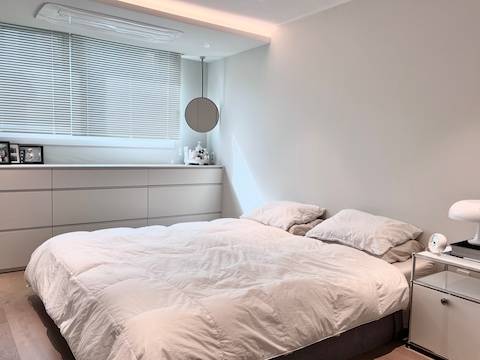 수납을 최대로 살려야 하는 집이기에 양쪽에 옷장과 수납장으로 속옷들과 스타일러를 보이지 않게 꼭꼭 숨겨놨답니다.