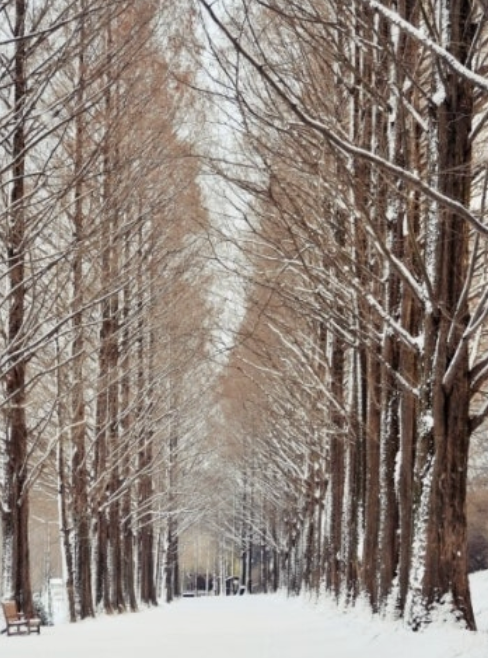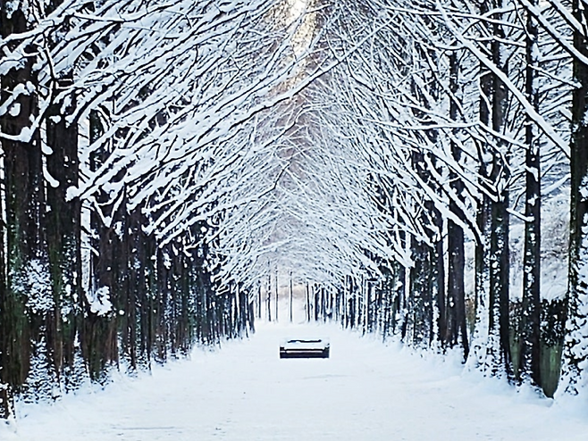 1. 이국적인 겨울 왕국, 엽서 속 풍경의 실사판 눈이 내린 메타세쿼이아 길을 걷는 경험은 마치 그림 엽서 속으로 걸어 들어가는 것과 같습니다. 길게 뻗은 나무줄기에 하얗게 쌓인 눈은 자연이 빚어낸 최고의 예술 작품입니다. 특히 이른 아침, 아무도 밟지 않은 눈길을 걷다 보면 도시의 소음과 스트레스는 사라지고 오직 자연과의 교감만이 남습니다. 사진 한 장만으로도 이곳이 한국이라는 사실을 믿기 어려울 만큼 이국적인 분위기를 자랑합니다.