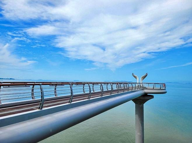 전남 영광군 백수해안도로에는 하늘과 맞닿은 듯한 아찔한 산책로가 있다. 바로 ‘영광 스카이워크’와 그 끝자락에 있는 ‘노을전망대’다. 해안 절벽 위를 따라 설치된 스카이워크는 바다를 향해 길게 뻗어 있어 사방에 펼쳐진 푸른 바다를 내려다보며 걷는 짜릿한 체험을 선사한다.