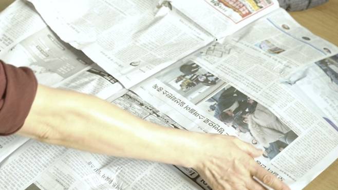 냄새나는 옷을 먼저 준비하고, 그 위에 신문지로 덮어 놓으세요.