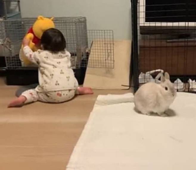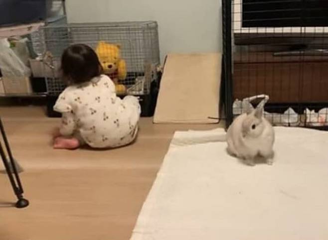 사연은 이렇습니다. SNS상에는 문이 열려 있는 케이지 밖으로 잠깐 나왔을 뿐인데 눈앞에서 대놓고 집을 빼앗긴 토끼 표정이 담긴 영상이 올라온 것.