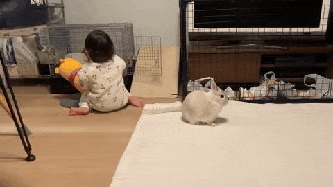 보면 볼수록 너무 귀엽고 사랑스러운 조합 아닌가요. 그렇게 오늘도 아이는 토끼와 함께 꽁냥꽁냥하면서도 행복한 추억들을 만들어 가고 있습니다.