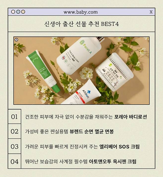 아직도 출산 선물이 고민이라면 엄마들의 가장 큰 고민 중 하나인 신생아 보습에 힘을 실어주자!