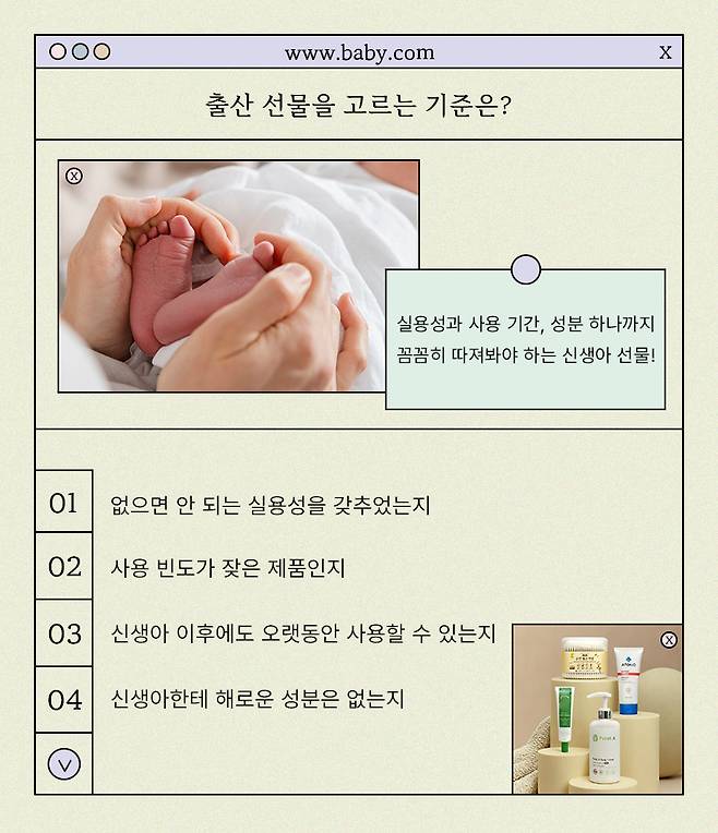 아직도 출산 선물이 고민이라면 엄마들의 가장 큰 고민 중 하나인 신생아 보습에 힘을 실어주자!