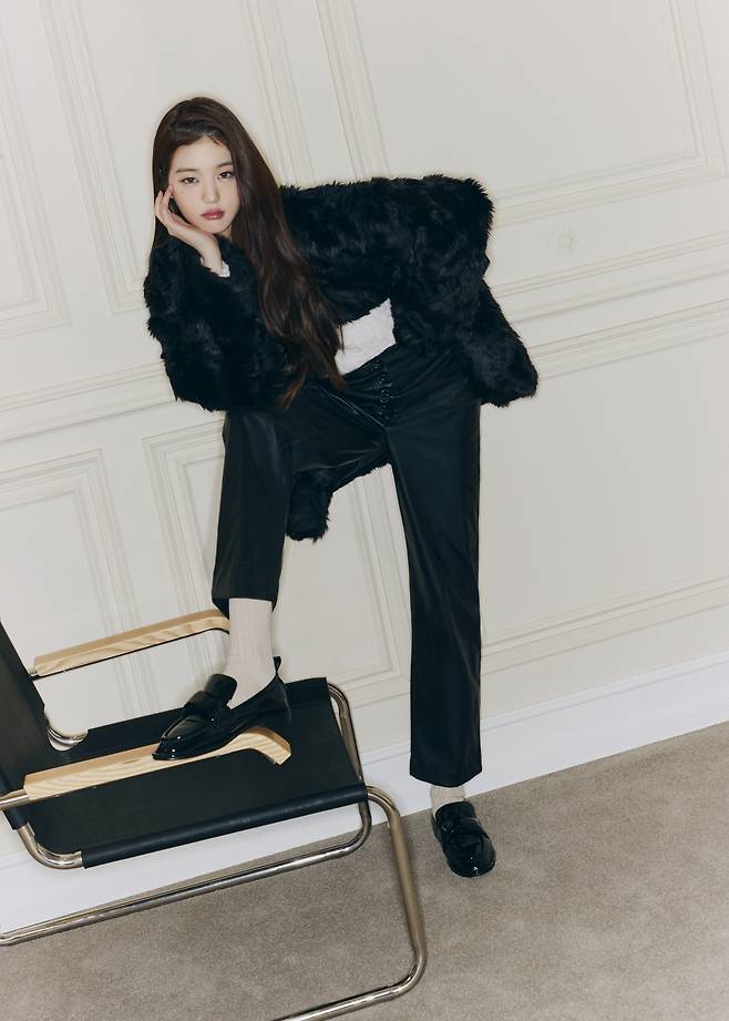검정 퍼 자켓과 로퍼로 겨울 패션도 볼 수 있었어요!