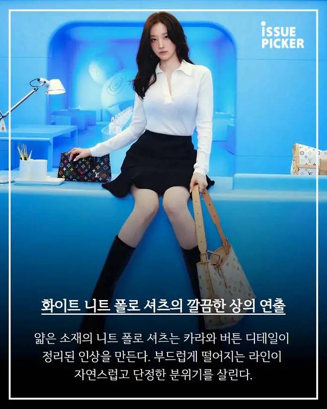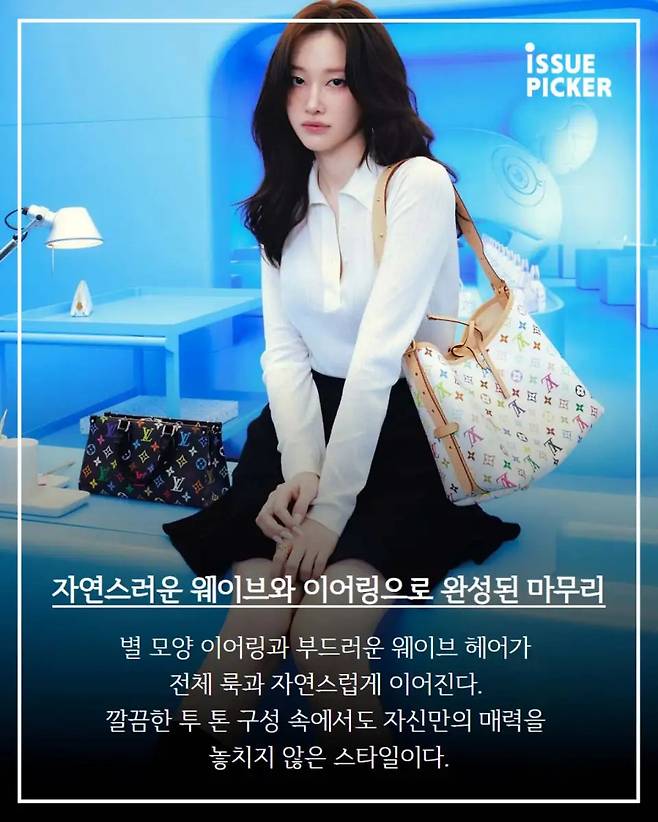 ์๊ฐ ๋ฃจ์ด ๋นํต ํฌํ ์ ์์์ ๋ธ๋๊ณผ ํ์ดํธ๋ง์ผ๋ก ๊ตฌ์ฑํ ๊น๋ํ ์คํ์ผ์ ๋ณด์ฌ์คฌ์ด. ๊ตฐ๋๋๊ธฐ ์๋ ์ ์กฐ์ ๋ก ๋จ๋ฒ์ ์์ ์ ๋๋ ์ฐฉ์ฅ์ด์๊ณ , ๊ทธ๋