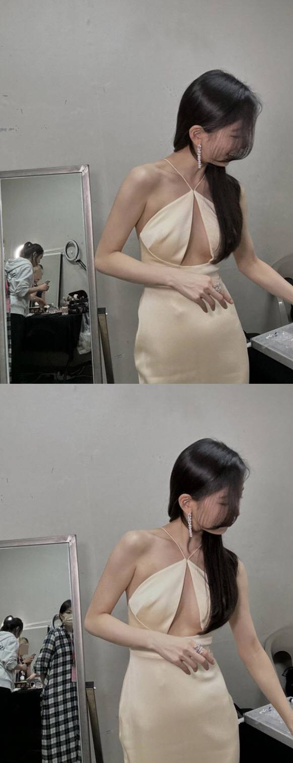 이어 '백상예술대상' 드레스 피팅 현장을 공개해 눈길을 끌었다. 수지는 파격적인 절개 드레스를 입고 우아한 비주얼을 자랑하고 있다. 평소 섹시함보다 수수하고 청순한 미모를 자랑했던 수지이기에 더욱 시선을 사로잡았다.